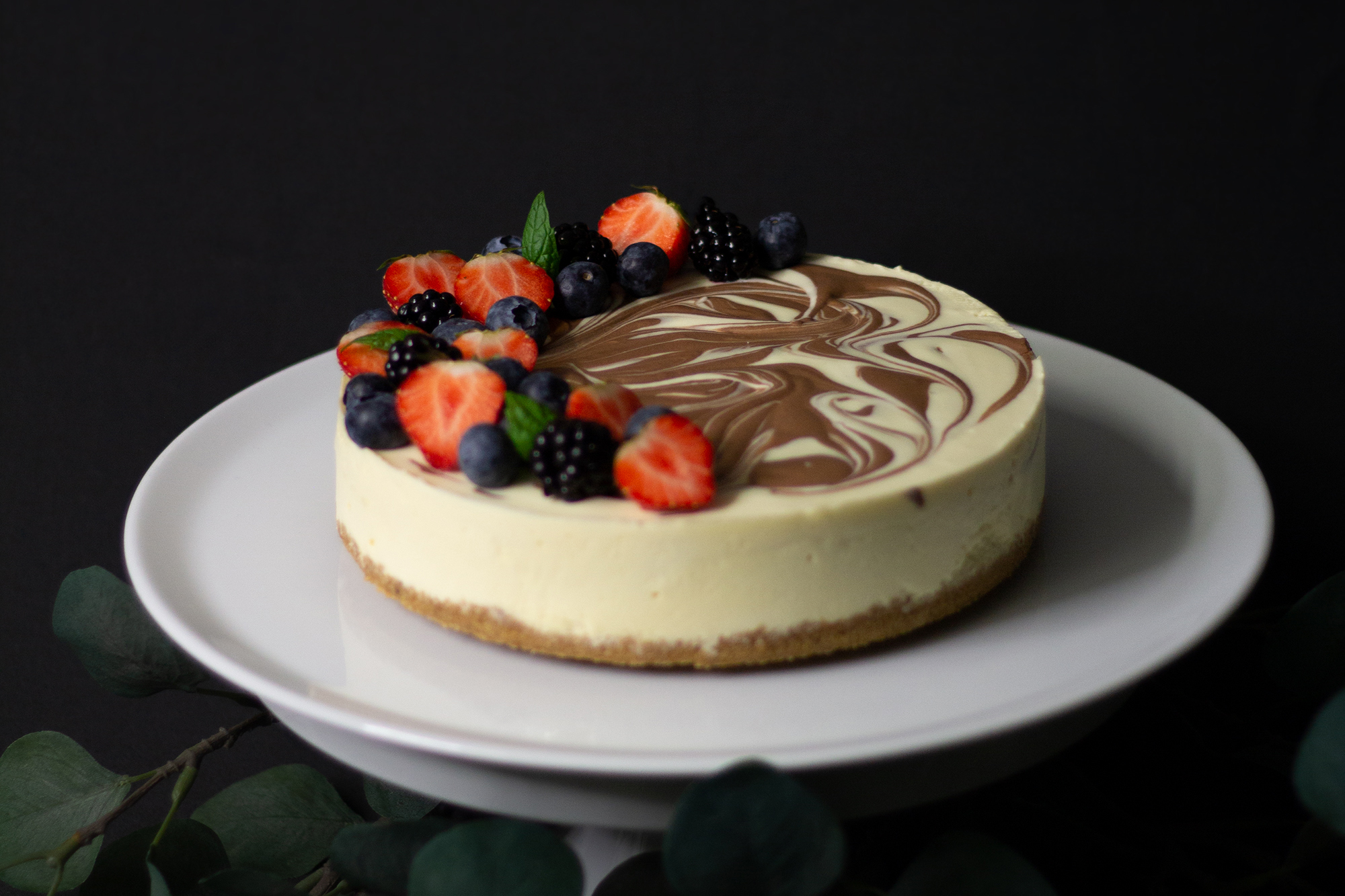 Sulo Bakeryn marmoroitua vadelma-mascarponekakkua ja tuoreita marjoja (L,G)